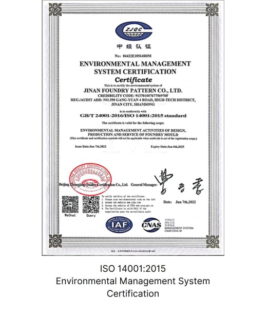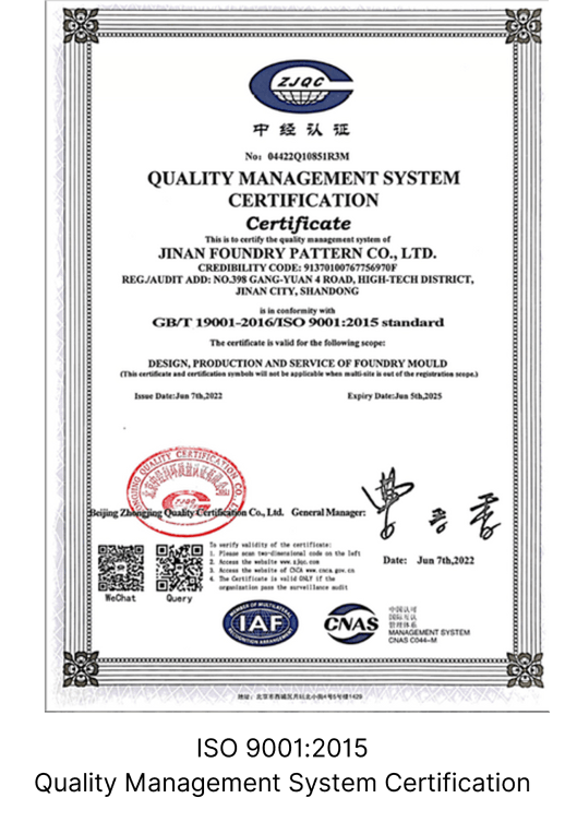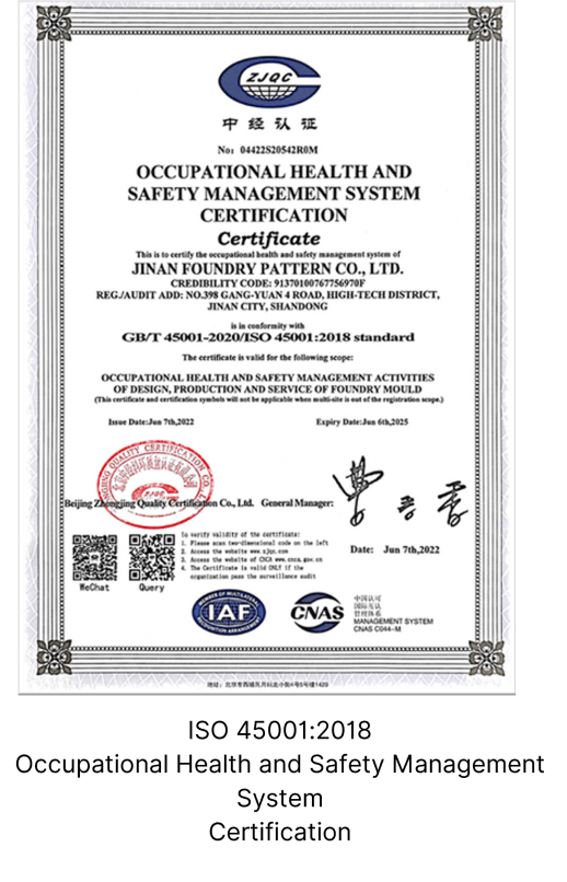 ISO 9001:2015, ISO 45001:2018, ISO 14001:2015, and GB/T 29490:2013.